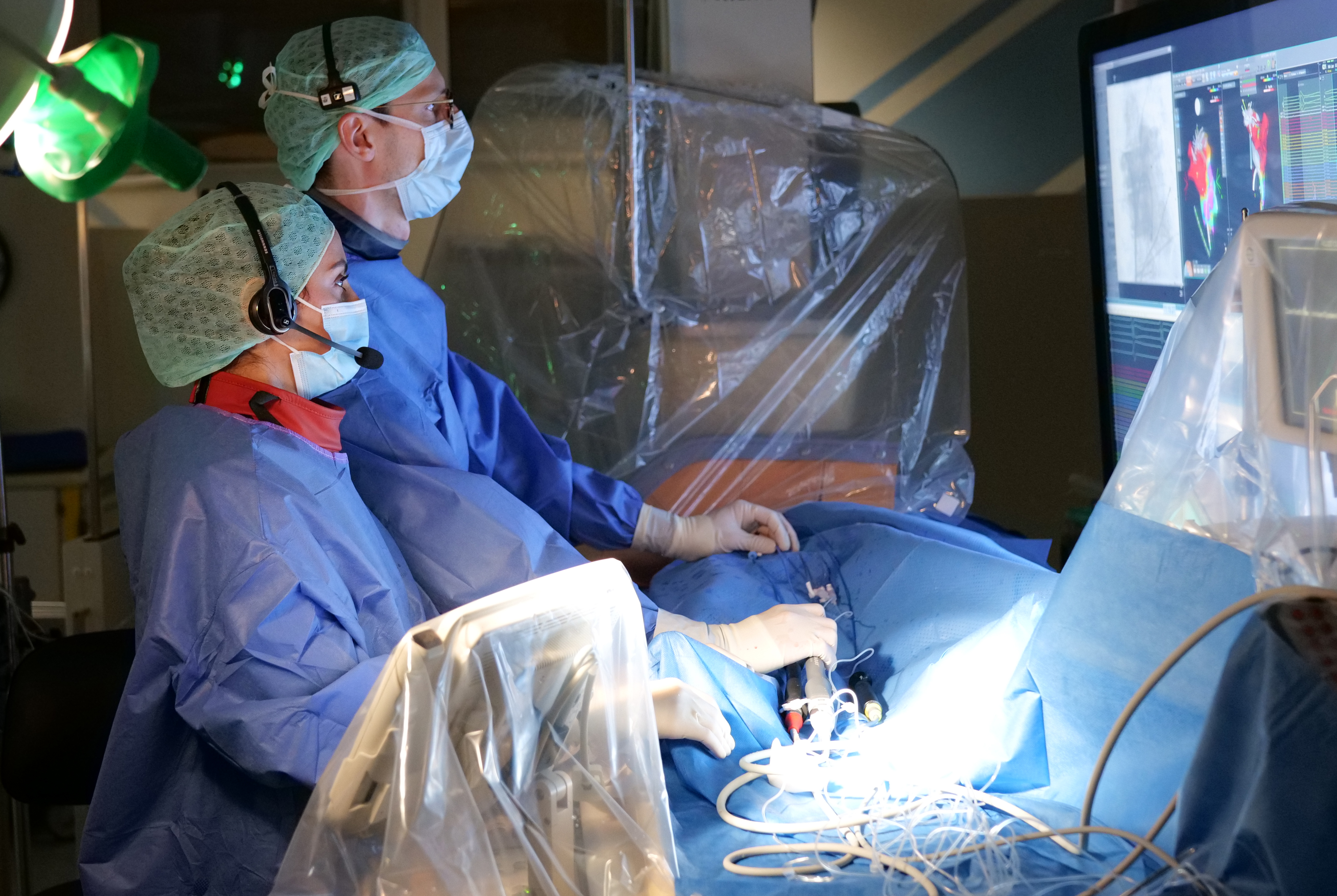 Foto: Oberärztin Dr. Akbulak-Stegli und PD Dr. Schäffer während einer Vorhofflimmer-Ablation